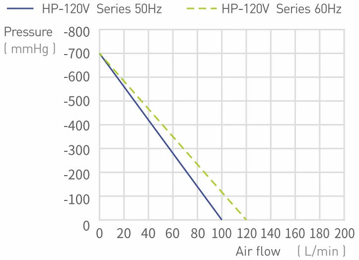 | HP-120V | 1Φ | 50 | 0.37 | 3.8 | -700 | 100 | 58 | 8.3 |